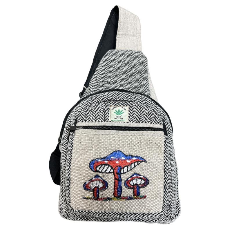 • Cotton Hemp Blue Mushroom Crossbody Bag RIB2298