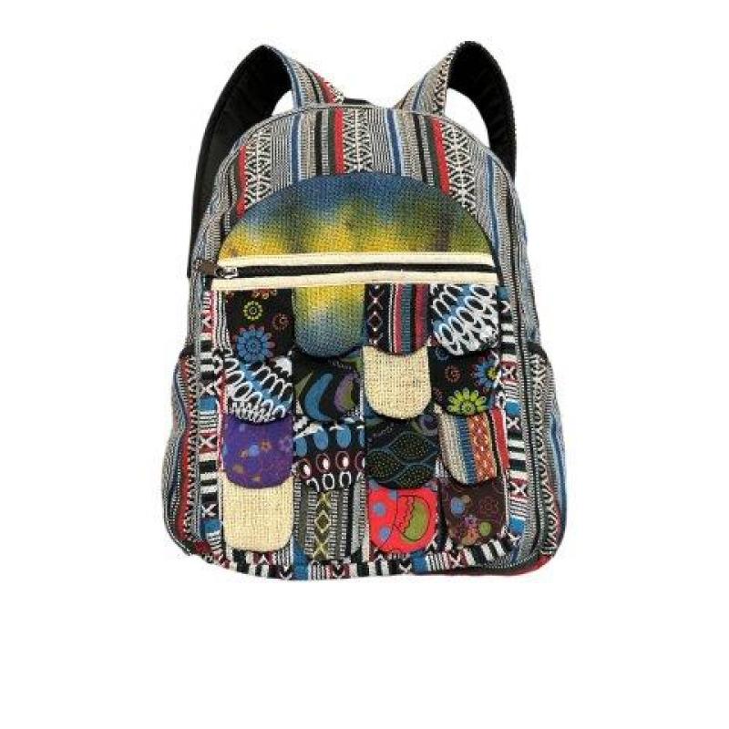 • Cotton Hemp Multi Patchwork Ruffle Backpack RIB24505