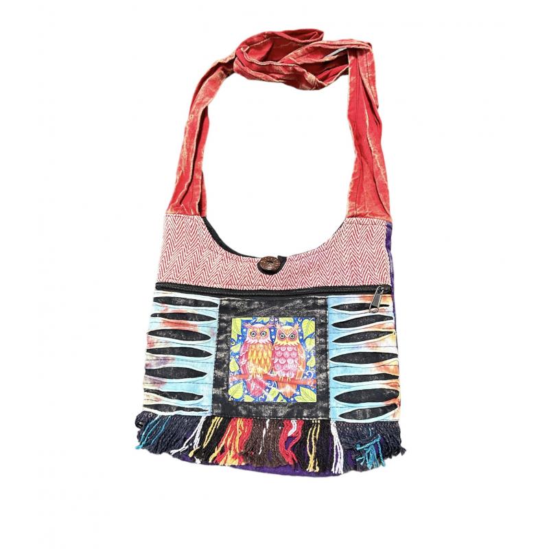 Cotton Multi Tie Dye Patchwork Zip Pocket Mini twin Owl Bag