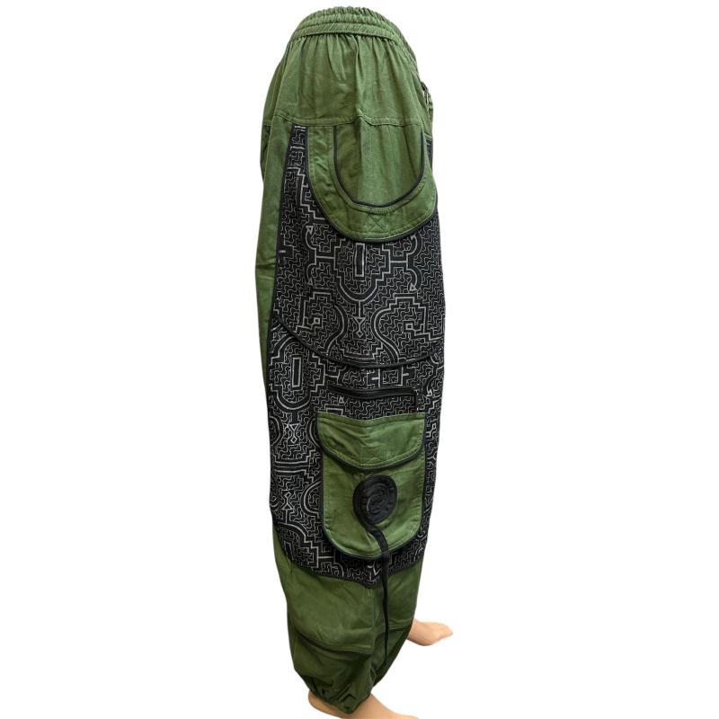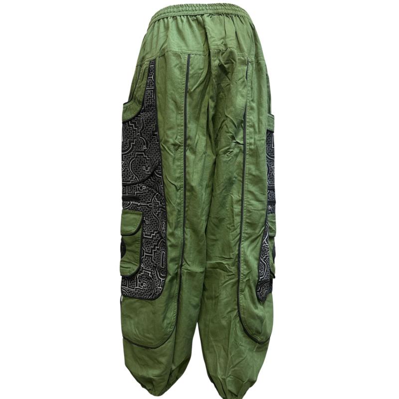 Cotton Heavy Shayma  Zip  Swirl Emb Pocket Green Himalaya Boho Pant