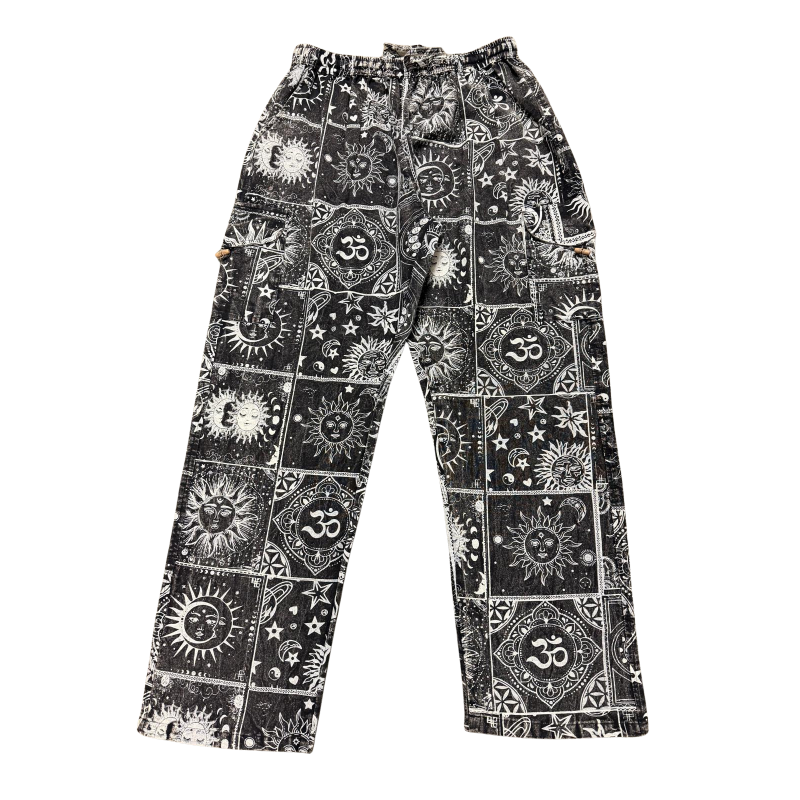 • Cotton Sun Moon Patch Design Black and White Pant NC61