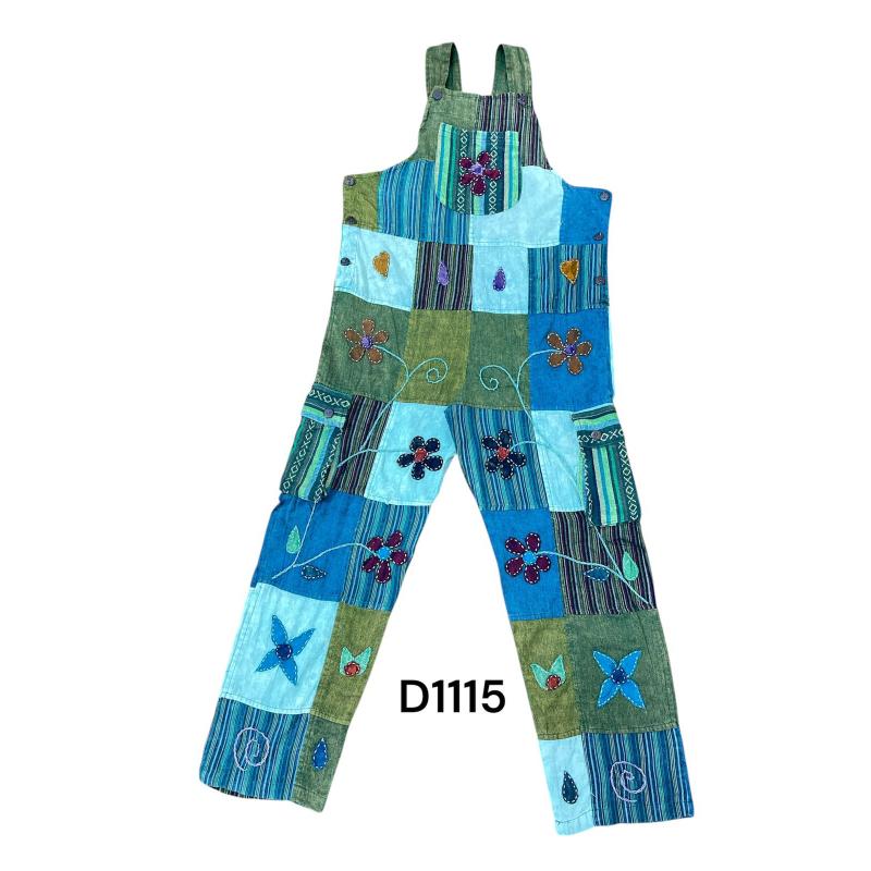 Cotton Multi Patch Hand Emb Jungle Queen Crazy Artwork Flowers Overall Jumpsuit