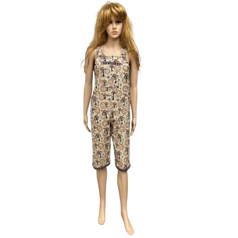 Cotton Color Path Trim Knee Length Casual Sun Moon Mushroom Jumpsuit