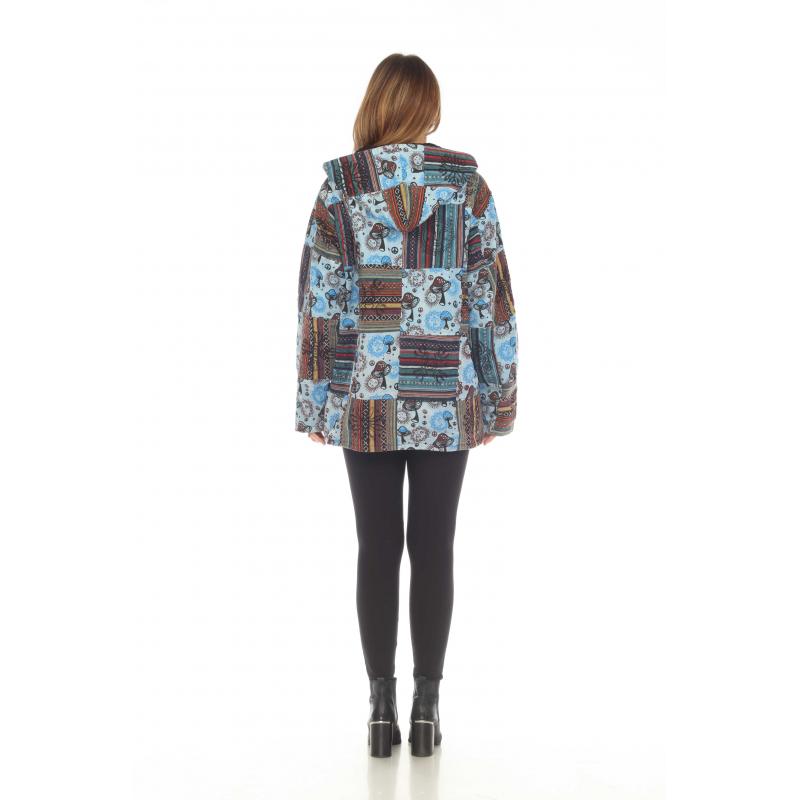 Cotton  Patchwork  Multi Mushroom  Fleece Lining  Zip Hoodie Jacket