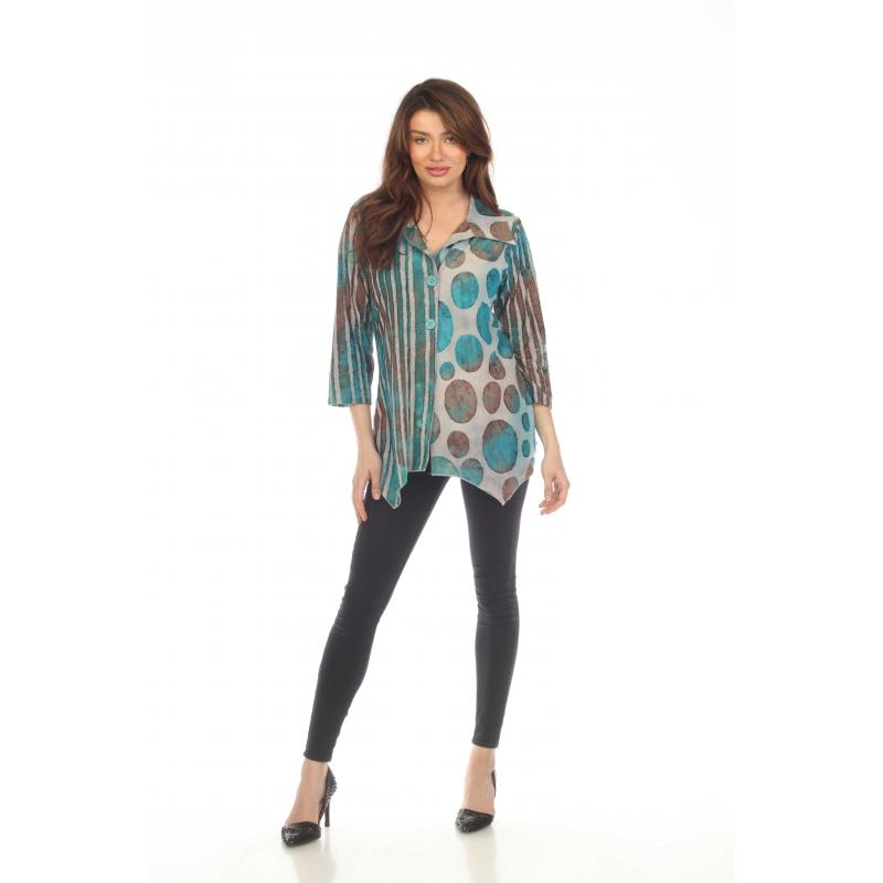 Women's Teal Polka Button Down Cardigan Shirt KV24742