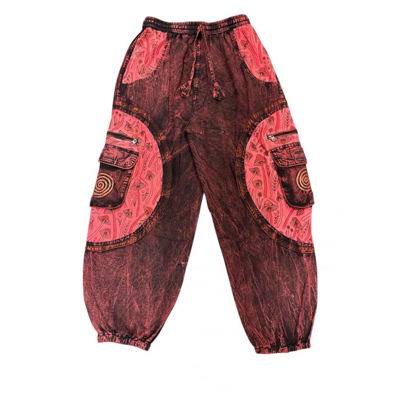 Cotton Brown Multi Round Swirl Box Pocket Pink Mushroom Pant