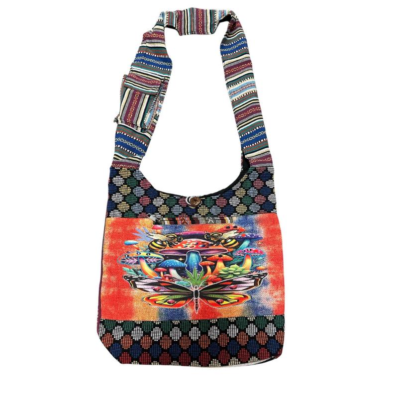 Cotton Multi Color patchwork Bee and Butterfly Mushroom Bag