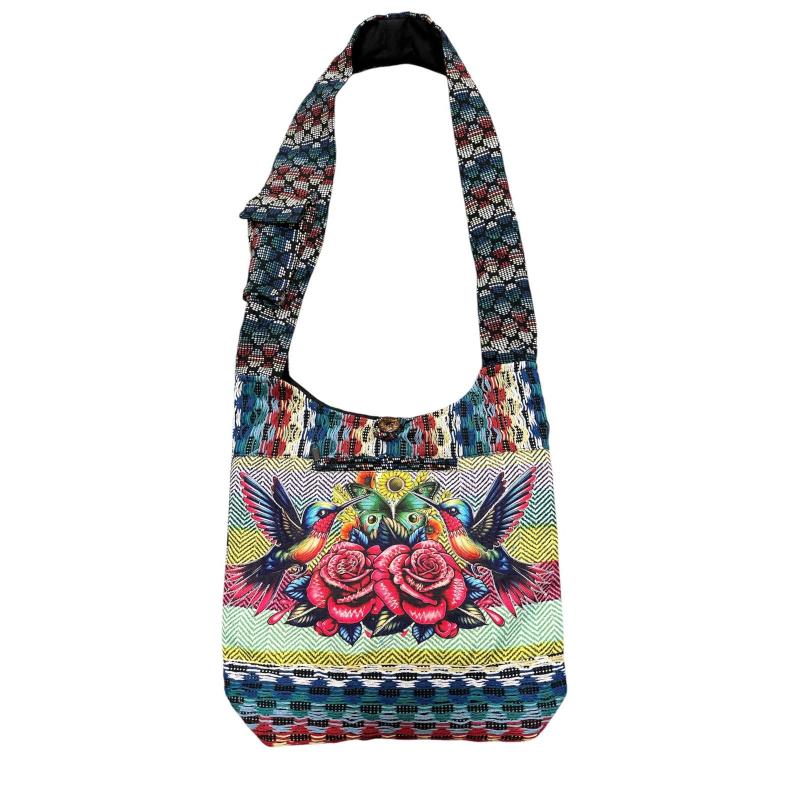 • Cotton Multi Color Patch Rose Butterfly Hummingbird Bag RIB25821