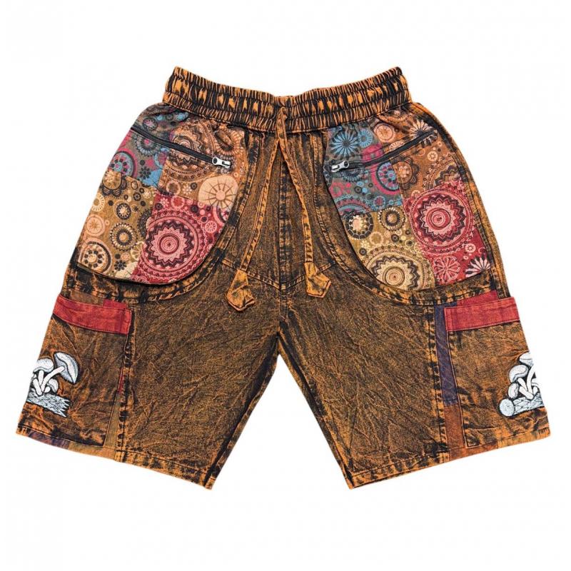Cotton Multi Color Patchwork Zip and Box Pocket Brown Mushroom Short