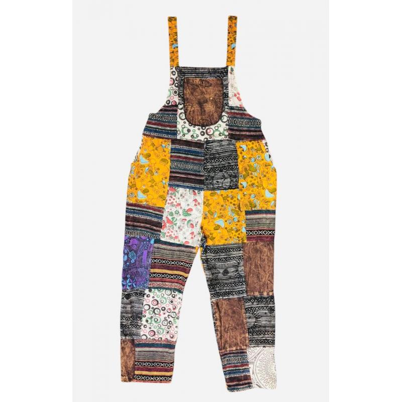 Cotton Multi Golden Patch work Elastic Back Tie Overall Jumpsuit