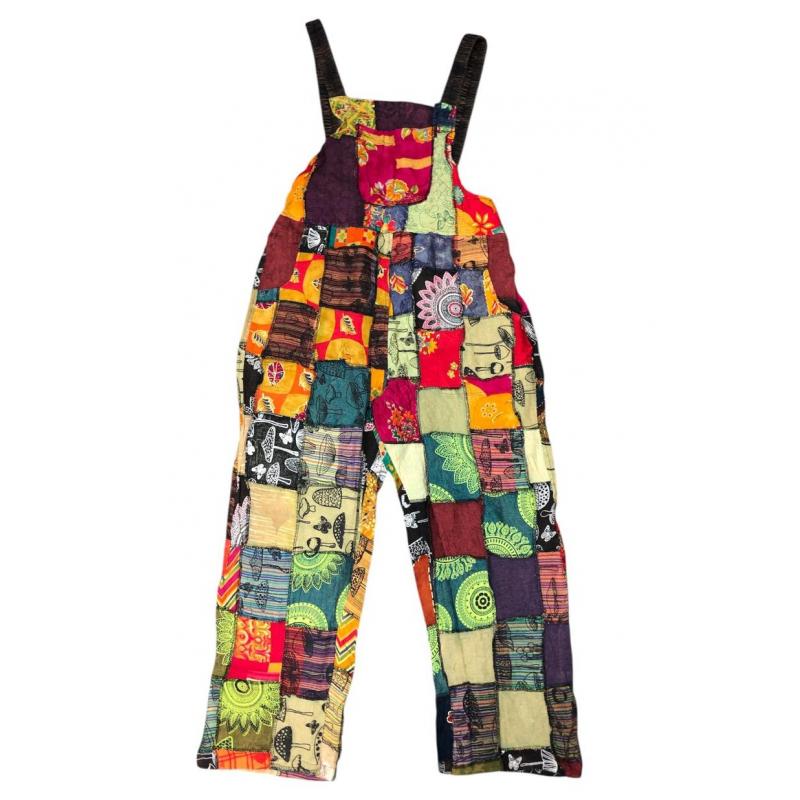 • Cotton Multi Color Patchwork Holidays Jumpsuit Overall R26008