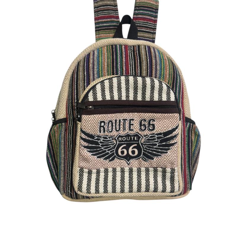 • Cotton Hemp Multi Color Route 66 Mini Backpack RIB25928
