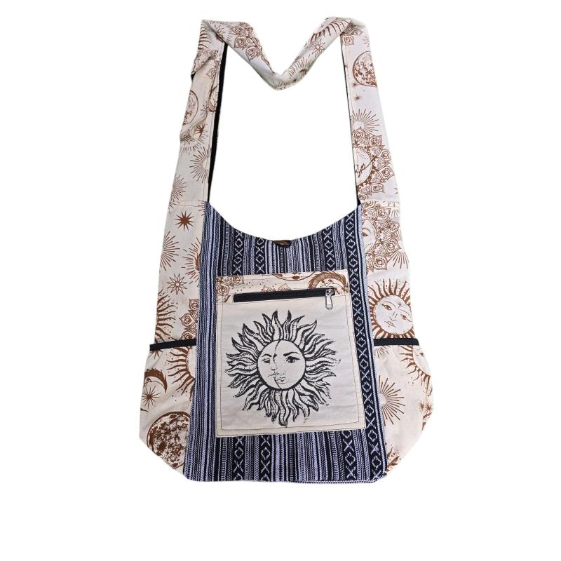 Cotton B/W Patchwork Grey Sun Moon Bag