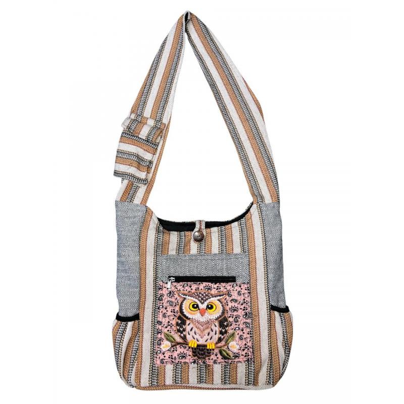 Cotton Multi Color Emb Mountain Owl Festival Bag