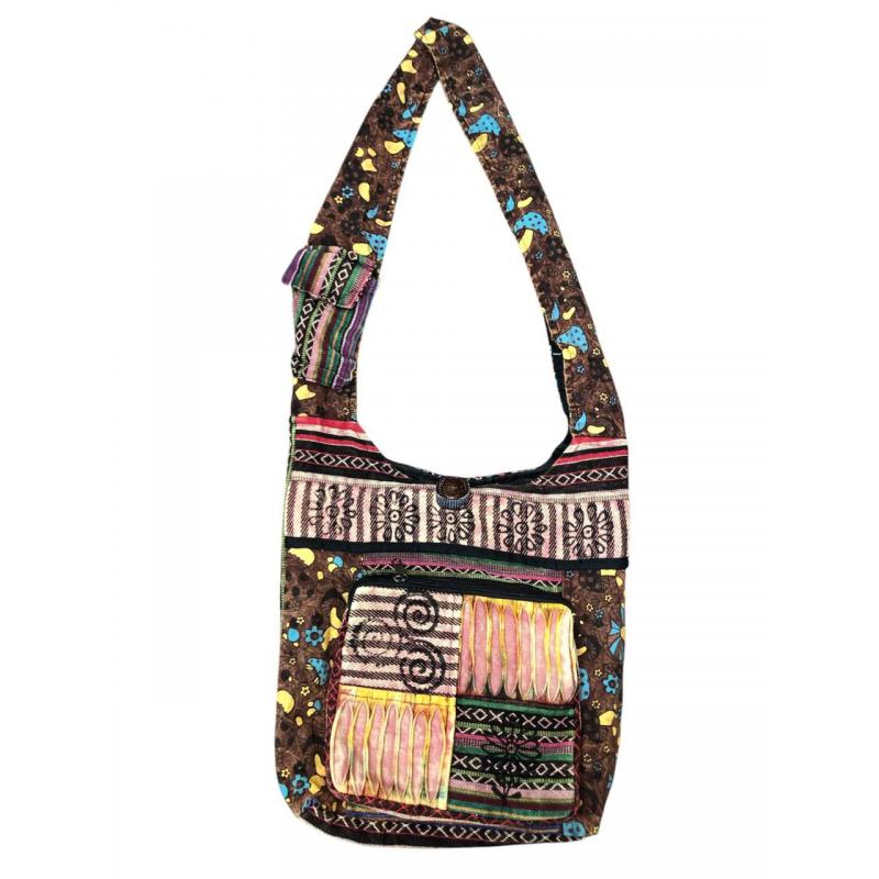 • Cotton Brown Multi Patch Golden Bag RIB25898
