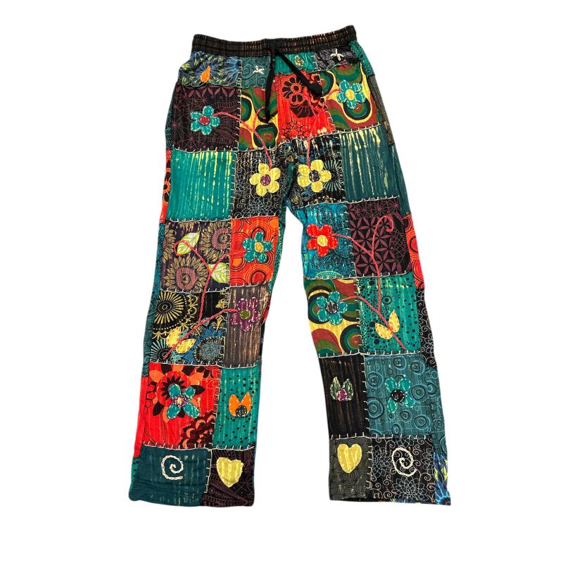 Cotton Multi Patchwork Brush X stich Patchwork Flower Embroidery Pant